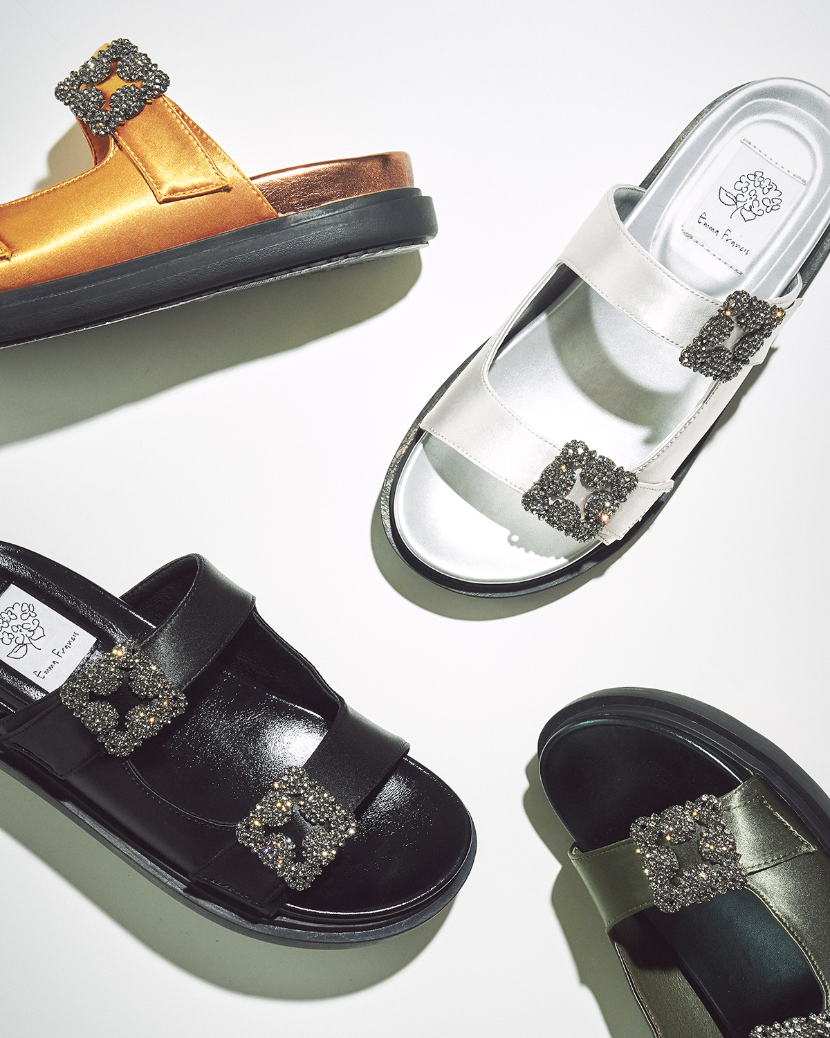 Emma Francisのビジューコレクションには定番のサテンビジューパンプスの他にも、今シーズンからは季節感のある新たなコレクションが仲間入り