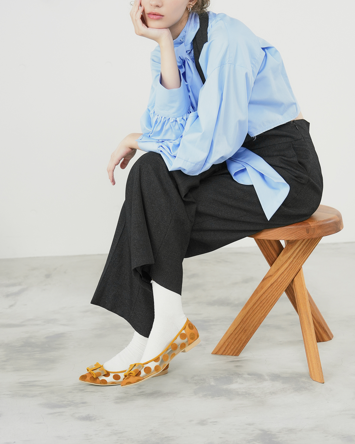 涼し気なチュール素材 x インパクトあるドット柄